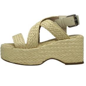 Esta deslumbrante sandália combina harmoniosamente o charme rústico da palha com a elegância atemporal de um salto médio, proporcionando um visual que é tão despojado quanto refinado.