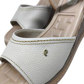 A parte superior traz um acabamento de qualidade, com tiras que envolvem o pé de forma confortável e promovem bom ajuste. O sistema de fechamento facilita a adaptação, permitindo que o encaixe fique no ponto ideal para cada pessoa. O design equilibrado valoriza tanto o conforto quanto o visual, combinando leveza, estabilidade e um toque de modernidade que se destaca em qualquer ocasião.