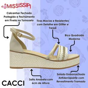 A nova Sandália Feminina Anabela Tramada Média da Mississipi é a escolha ideal para quem deseja adicionar sofisticação e conforto ao visual. Seu design moderno, com detalhes em glitter e tressê, é perfeito para quem busca elegância com um toque de brilho. O salto anabela de 6 cm oferece conforto e estabilidade, enquanto o calcanhar fechado e o fechamento prático garantem um ajuste perfeito. Versátil e estilosa, ela é a opção ideal para diversas ocasiões!