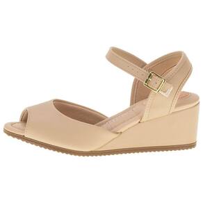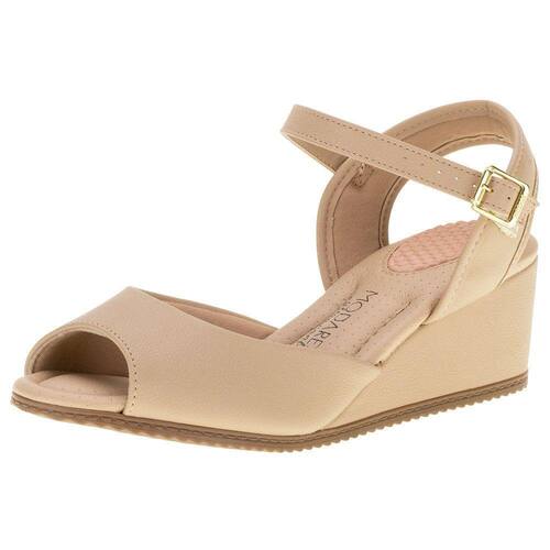 A Sandália Feminina Anabela Modare é confeccionada em Napa Float com acabamento em costura, fechamento por fivela de ajuste, palmilha em EVA com gota Flexsense e solado em borracha antiderrapante com salto de sete centímetros.
