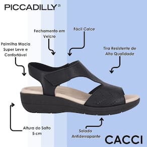 Esta sandália da Piccadilly foi criada para oferecer bem estar desde o primeiro passo, unindo leveza, praticidade e um visual elegante que combina com diferentes momentos do seu dia. A palmilha macia proporciona uma sensação suave e acolhedora, tornando cada caminhada mais leve e prazerosa. A estrutura foi desenvolvida para acompanhar o ritmo da rotina com conforto prolongado, trazendo um apoio equilibrado que valoriza a experiência de uso.