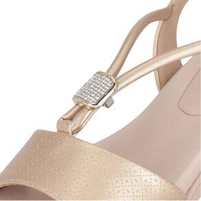 As tiras foram desenvolvidas com alta qualidade para garantir firmeza, apoio e um encaixe confortável no pé. O fechamento traz ajuste seguro e fácil de usar, mantendo tudo no lugar com delicadeza. Os detalhes metalizados e o brilho sutil adicionam charme ao design, criando um visual sofisticado que valoriza qualquer composição. A altura baixa do salto entrega estabilidade e suavidade, oferecendo o equilíbrio perfeito entre leveza e comodidade.