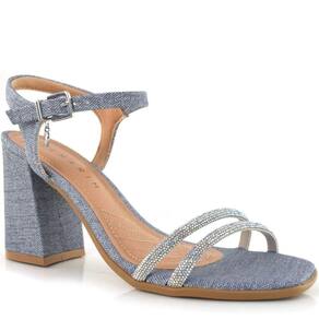 Sandália Feminina Casual Social com Strass Bico Quadrado Salto Grosso Ramarim 2341201 - 35 - Azul Claro