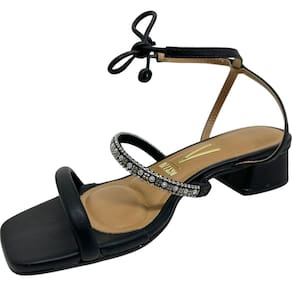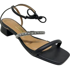 Sandália Feminina Casual Social Dia a Dia Passeio com Strass e Tira de Amarração Salto Baixo Conforto Vizzano 6454.125