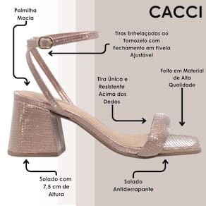 Descubra o equilíbrio perfeito entre estilo e conforto com nossa Sandália Cacci, uma combinação perfeita entre moda e conforto. Com um design moderno, ela oferece uma opção versátil para quem busca praticidade sem perder o charme.
