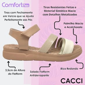 A Sandália Feminina Flatform Brilho ComfortFlex é a escolha perfeita para quem busca conforto, estilo e um toque de glamour. Transforme seu visual com essa sandália que combina praticidade e elegância! Não fique de fora, garanta a sua e brilhe em cada passo!