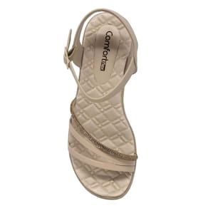 A tira com fechamento prático no calcanhar permite um ajuste perfeito, garantindo que a sandália se mantenha firme nos seus pés, proporcionando liberdade de movimento.