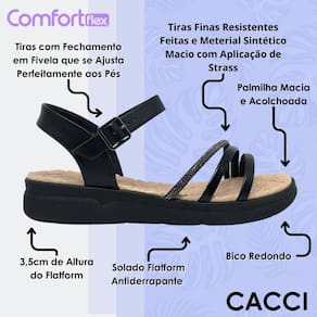 A Sandália Feminina Flatform ComfortFlex é a opção ideal para mulheres modernas que não abrem mão do conforto sem abrir mão da sofisticação. Adicione um toque de brilho ao seu guarda-roupa e sinta-se confiante em cada passo! Garanta a sua e transforme seu estilo com muito conforto!