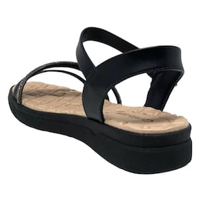 A tira com fechamento prático no calcanhar permite um ajuste perfeito, garantindo que a sandália se mantenha firme nos seus pés, proporcionando liberdade de movimento.