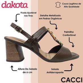 Descubra o equilíbrio perfeito entre estilo e conforto com este modelo da Dakota, pensado para mulheres que não abrem mão de praticidade sem perder a elegância. O design moderno e sofisticado garante que cada passo seja feito com segurança e confiança, tornando-o ideal para o dia a dia ou para ocasiões especiais. Cada detalhe foi cuidadosamente elaborado para transmitir requinte e personalidade, destacando-se pelo acabamento impecável e pelo toque diferenciado das pedras orgânicas aplicadas. A palmilha confortável proporciona um caminhar leve e agradável, enquanto o solado antiderrapante garante estabilidade em diferentes superfícies, oferecendo segurança e bem-estar a cada movimento. A altura do solado de 6 cm confere o equilíbrio ideal entre elevação e conforto, permitindo maior liberdade de movimentos sem comprometer o estilo. O cabedal em couro autêntico de alta qualidade assegura durabilidade e resistência, aliado a um visual sofisticado que se adapta a diversos looks. As tiras ajustáveis com fivela proporcionam um encaixe personalizado, garantindo que o calçado se ajuste perfeitamente ao formato do pé, oferecendo conforto prolongado mesmo em longos períodos de uso. O detalhe metalizado das pedras orgânicas adiciona um toque de luxo discreto, elevando o design e tornando o modelo uma peça versátil, que combina com diferentes ocasiões. Ideal para quem busca praticidade sem abrir mão da sofisticação, este calçado Dakota é a escolha certa para quem valoriza estilo, conforto e qualidade em cada detalhe.