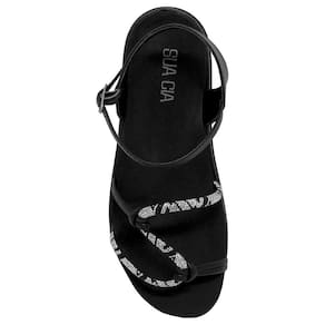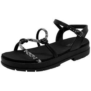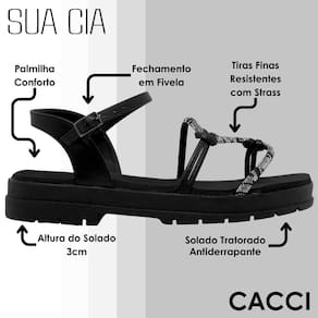 Sandália Feminina Conforto Tiras Finas Strass Sua Cia - Preto - 36