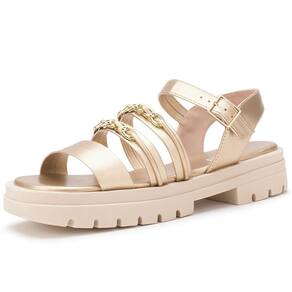 Com um solado tratorado robusto e detalhes em correntes, esta sandália oferece um visual contemporâneo e estiloso. Perfeita para compor looks ousados e modernos, seja com calças, saias ou vestidos.