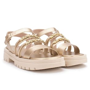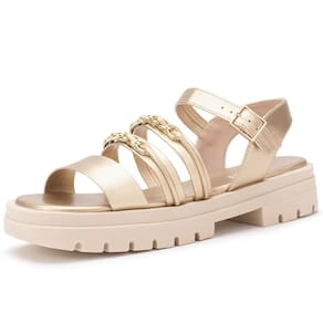 Com um solado tratorado robusto e detalhes em correntes, esta sandália oferece um visual contemporâneo e estiloso. Perfeita para compor looks ousados e modernos, seja com calças, saias ou vestidos.