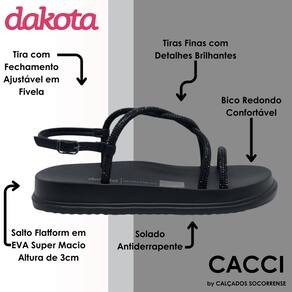 Leveza e estilo se unem em harmonia nesta sandália, com altura da sola de 3.00 cm que adiciona um toque moderno e trendy ao seu visual. Seja para um passeio descontraído ou para enfrentar as demandas do dia a dia, a sandália Dakota é a escolha perfeita para quem busca a combinação ideal entre moda e conforto.