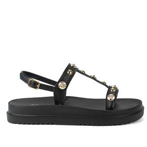 Sola robusta e macia de 3,5 cm Design minimalista com detalhes metalizados Fivela ajustável no tornozelo para um ajuste perfeito Aplicações metalizadas nas tiras para um toque de personalidade