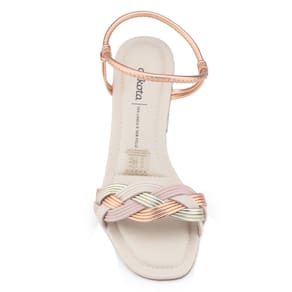 Sandália feminina Dakota Y6874 é moderna e confortável, fabricada em material sintético, apresenta toda a qualidade da marca. Esta sandália é salto bloco médio e destaca-se em looks para passeios e também tem conforto para o dia a dia. Seu cabedal tem como destaque 3 tiras que se entrelassam no peito do pé formando uma tira de 3,5cm de largura, este modelo apresenta acabamento metalizado. O calcanhar neste modelo é aberto e o calçe é fácil, pois basta encaixar o pé, sua tira do tornozelo é elástica permitindo inclusive que a sandália seja usada como um tamanco, a palmilha fixa é almofadada, com a Logo da marca. O salto bloco é médio, possui 6,5cm de altura revestido com o mesmo material do cabedal, solado com frisos para maior segurança.