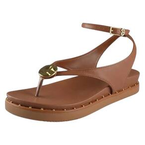Além disso, o solado emborrachado antiderrapante garante segurança ao caminhar em diferentes superfícies, trazendo estabilidade e firmeza. O charme das pequenas tachas aplicadas ao redor do solado adiciona modernidade e estilo, tornando a sandália ainda mais exclusiva. Com altura de 3,5cm , o solado equilibra leveza e conforto, oferecendo um discreto realce que valoriza a silhueta sem abrir mão do bem-estar. Esse modelo é ideal para quem procura um calçado que transita bem entre o dia e a noite, podendo ser utilizado em passeios, compromissos casuais, encontros ou até mesmo em ocasiões que pedem um toque mais elegante.
