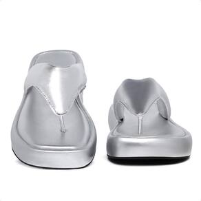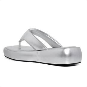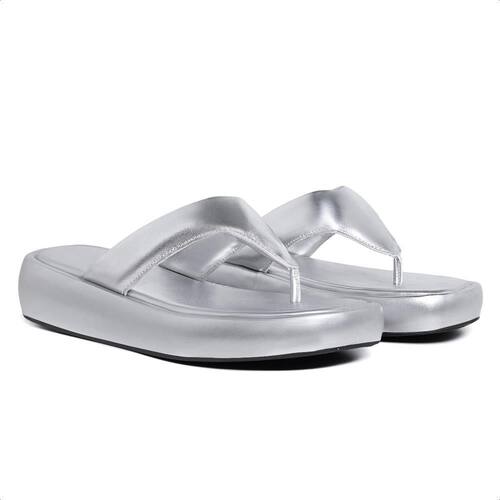 Sandália Feminina de dedo Metalizada Moderna Estilo Flat - 34 - Cinza
