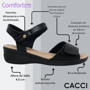 Sandália Feminina Elástico Casual Conforto Comfortflex - Preto - 37