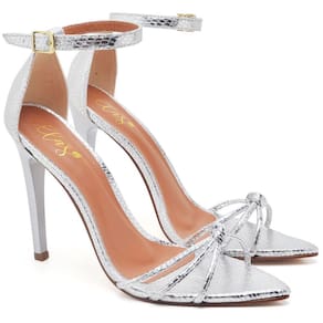 Sandália Feminina Ellas Online Salto Alto Bico Folha Cristal Prata - 39 - Prata