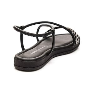 A Sandália Dakota Flatform é a escolha ideal para quem busca um calçado versátil e estiloso para o dia a dia e momentos de lazer. Com um design minimalista, esta sandália é formada por tiras finas que proporcionam conforto e praticidade, pois não possui fechamentos. O destaque deste modelo é a tira frontal, que é adornada com detalhes metalizados e brilhos, adicionando um toque de sofisticação e elegância ao seu visual. Com uma altura da sola de 1,5cm, esta flatform oferece um discreto ganho de altura, sem comprometer o conforto, tornando-a perfeita para diversas ocasiões.