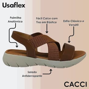 A Sandália Feminina Usaflex é a escolha perfeita para quem valoriza elegante sem abrir mão do conforto. Com um design clássico e funcional, ela se adapta a diversas graças, trazendo leveza e estilo para os seus dias.