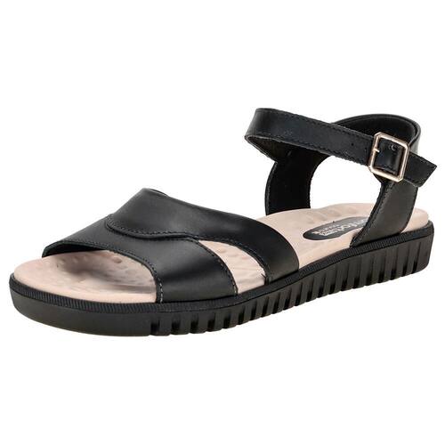 A Sandália Feminina Flat ComfortFlex é confeccionada em Couro de alta qualidade com acabamento em costura, fechamento lateral por fivela de ajuste, palmilha em PU e solado em borracha com salto baixo de três centímetros.