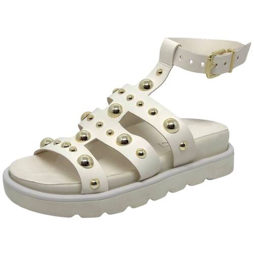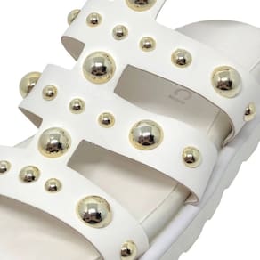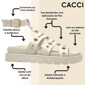 Sandália Feminina Flat Conforto Tiras Pins Dourado Cacci - Branco - 36