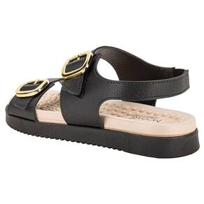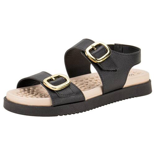 A Sandália Feminina Flat Modare. Desenvolvida em Napa Floather Nature com um acabamento impecável. A palmilha feita de EVA possui esferas que massageiam os pés com o solado em borracha possuindo três centímetros. Tendo um fechamento por fita duplamente aderente na lateral.
