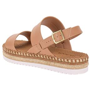 Sandália Feminina Flat Moleca 5447518 de salto baixo com solado de 3 cm. Feita em Napa Turim, com palmilha em EVA e sola em borracha. Acabamento colado/costurado e fechamento por fivela para um ajuste seguro e confortável. Ideal para o dia a dia com elegância.