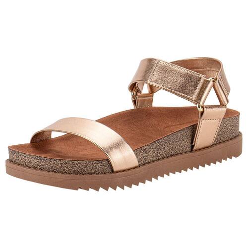 A Sandália Feminina Flat Moleca oferece estilo e conforto com seu design moderno! Feito em material metalizado premium, com interior têxtil e palmilha de EVA para maior conforto. Sola de borracha com 3 cm de altura para aderência e leve elevação. Perfeito para um look casual e versátil!
