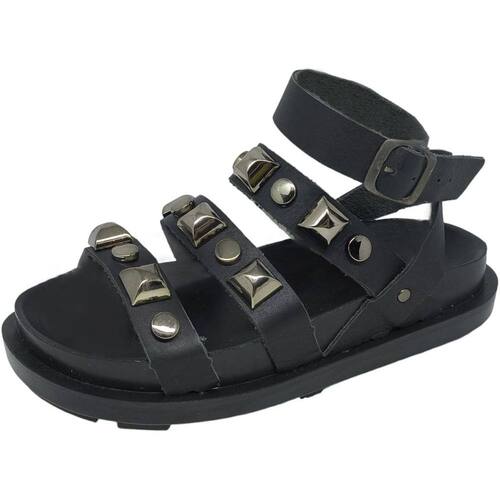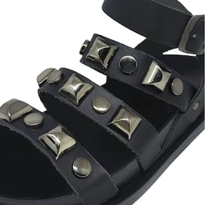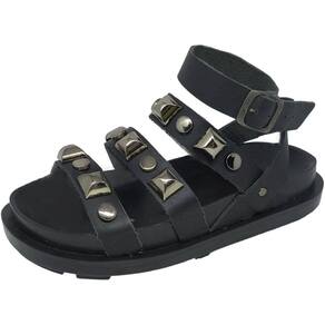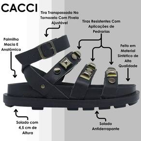 Sandália Feminina Flat Tratorada Conforto Pedraria Cacci - Preto - 35