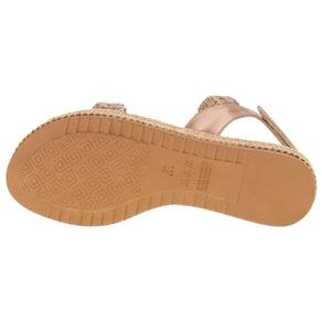 A Sandália Feminina Flat Via Scarpa é confeccionada em material metalizado soft com acabamento em costura, palmilha em PU e solado em borracha com salto flat de dois centímetros.