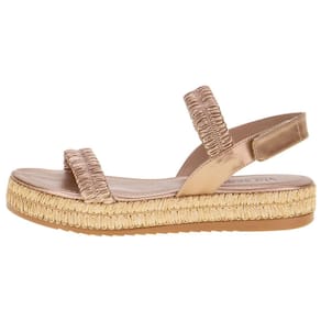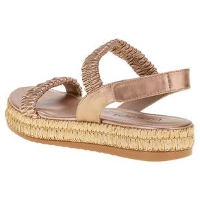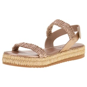 A Sandália Feminina Flat Via Scarpa é confeccionada em material metalizado soft com acabamento em costura, palmilha em PU e solado em borracha com salto flat de dois centímetros.