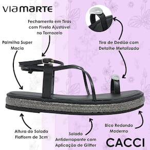 Com essa sandália, você estará pronta para arrasar em qualquer ocasião, trazendo estilo e brilho para o seu dia a dia. Experimente o charme único da Via Marte e sinta-se incrível!