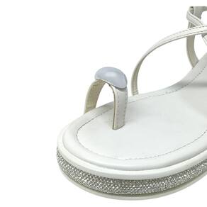 Design moderno e glamouroso: tira de dedão com detalhe metalizado e solado flatform com aplicação de glitter, que trazem brilho e sofisticação ao visual.