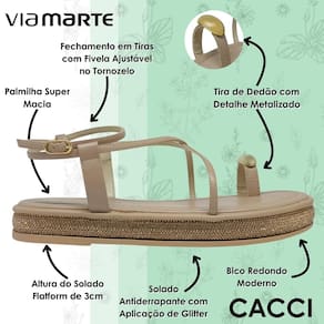Com essa sandália, você estará pronta para arrasar em qualquer ocasião, trazendo estilo e brilho para o seu dia a dia. Experimente o charme único da Via Marte e sinta-se incrível!