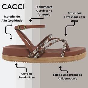 Descubra o equilíbrio perfeito entre estilo e conforto com nossa sandália flatform Cacci, uma combinação perfeita entre moda e conforto. Com um design moderno, ela oferece uma opção versátil para quem busca praticidade sem perder o charme.