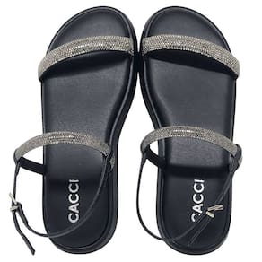Sandália Feminina Flatform Conforto Elegante Strass Cacci - Preto - 37