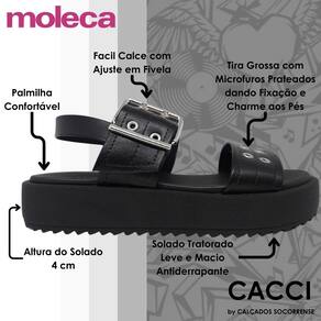 A Sandália Flatform Tratorada da Moleca é a combinação perfeita de modernidade e praticidade para o dia a dia. Com solado plataforma de 4 cm, ela oferece altura e estilo sem abrir mão do conforto.