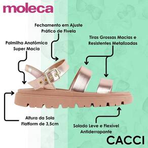 Com a Sandália Flatform Conforto Metalizada da Moleca, seus pés ganham um toque de luxo, e seu visual, um charme especial. Perfeita para quem quer brilhar sem abrir mão do conforto, ela vai ser sua companheira ideal para qualquer ocasião!