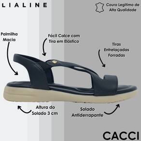 Sandália Feminina Flatform Couro Conforto Casual Lia Line - 35 - Preto