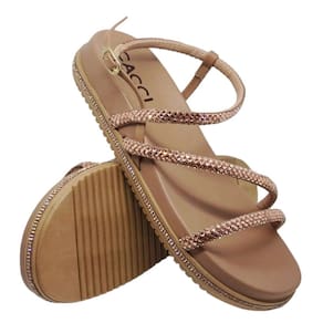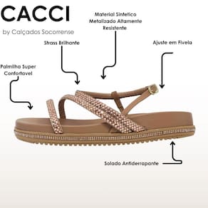 A sandália apresenta um visual contemporâneo, perfeito para mulheres que buscam estar na moda sem abrir mão do conforto. Seu design flat oferece uma alternativa prática e estilosa para o dia a dia, enquanto a marca Cacci assegura qualidade e durabilidade.