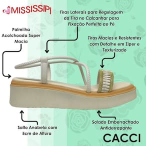 A nova Sandália Flatform Texturizada da Mississipi é a escolha perfeita para quem busca um toque moderno e despojado sem abrir mão do conforto. Seu design exclusivo traz tiras macias e resistentes com uma textura sofisticada e fechamento em zíper, garantindo um ajuste prático e estiloso.