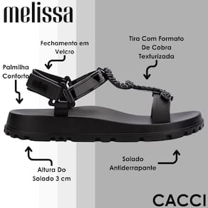 A Melissa Papete + BO.BO é a escolha perfeita para quem busca conforto e estilo em um só produto. Com um design moderno e materiais de alta qualidade, esta sandália é ideal para quem valoriza moda e praticidade.