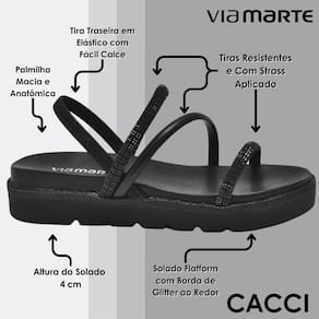 A sandália Papete Via Marte é a escolha perfeita para quem busca um calçado estiloso e confortável. Seu solado flatform, revestido por uma borda charmosa, proporciona uma pisada firme e segura em todos os momentos. A palmilha anatômica garante o máximo de conforto aos seus pés, permitindo que você caminhe com tranquilidade e leveza. O calcanhar é envolvido por tiras que se cruzam e envolvem o tornozelo, com fechamento em tira com elástico, proporcionando um ajuste perfeito através do fechamento prático na lateral. Além disso, uma composição de tiras envolve o peito e os dedos do pé, criando um visual elegante e sofisticado.