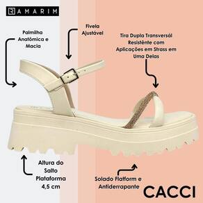 Fabricada em material sintético de alta qualidade, esta sandália oferece durabilidade e resistência, garantindo que você possa aproveitar a estação com um calçado que se mantém em excelente estado. O tipo de salto médio, com altura de 5 cm, proporciona o equilíbrio perfeito entre conforto e estilo, permitindo que você se sinta confiante e confortável ao caminhar, seja em um passeio descontraído ou em um evento mais sofisticado.
