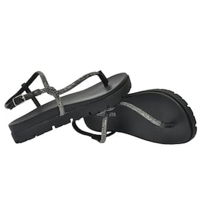 A sandália rasteira papete flatform vem com um solado flatform revestido por um tramado de tiras delicadas, e sua palmilha anatômica garante conforto ao caminhar. Uma tira revestida de strass envolve o pé, adicionando um toque de brilho. O calcanhar é envolvido por tiras com fechamento prático na lateral, completando o design elegante e seguro desta sandália.