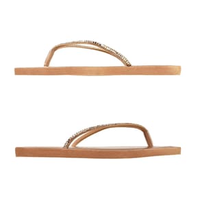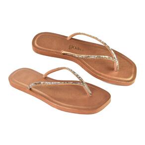 Sandália Feminina Godiva De Dedo Pedraria Ajustável Floather Bronze 347881 A Sandália Feminina Godiva De Dedo Pedraria Casual Ajustável Floather Bronze é a personificação da elegância descomplicada para os dias de sol. As tiras finas trançadas com detalhes em pedraria adornam delicadamente os pés, proporcionando um toque sofisticado e moderno. O design leve e aberto garante frescor e conforto, enquanto o fechamento ajustável oferece segurança e praticidade. Perfeita para complementar looks casuais com um toque de charme, essa rasteirinha é a escolha ideal para aproveitar cada momento com estilo e bem-estar. A marca Godiva, conhecida por sua qualidade e design, garante um calçado durável e cheio de personalidade.