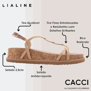Sandália Quito Lia Line + Natália Toscano é um modelo confortável e lindo que com certeza vai ser escolhido para estar aos seus pés nos melhores dias. Super leve, e moderno, essa flatform possui regulagem com suas fivelas, solado estruturado e tiras entrelaçadas sobre o cabedal. Aposte neste modelo que é pura elegancia e brilhe com Lia Line.